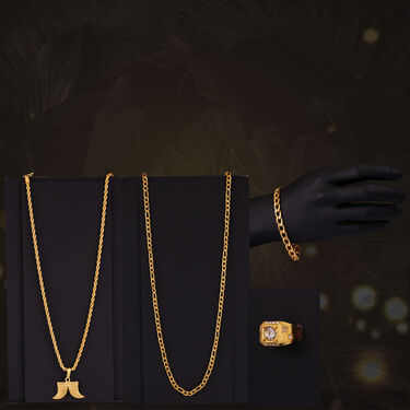 2 Golden Chain + Bracelet + Ring + Free Watch (2GCBRW18)