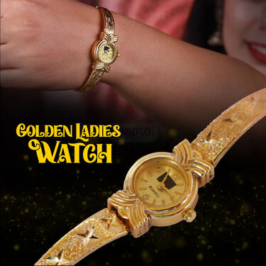 Stylish golden watch set is designed for elegance and versatility. Crafted with precision, it offers a refined look that pairs well with formal and casual outfits, making it a great addition to any collection.